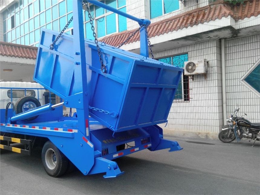 2. 适用各种垃圾斗及各种容积的箱体,带自卸功能,液压操作,垃圾斗可自吊上吊下,摆臂一次工作循环时间:60S。该车的特点是货斗与车体分开,能实现一台车与多个货斗联合作业,循环快速运输,充分提高了车辆的工作效率