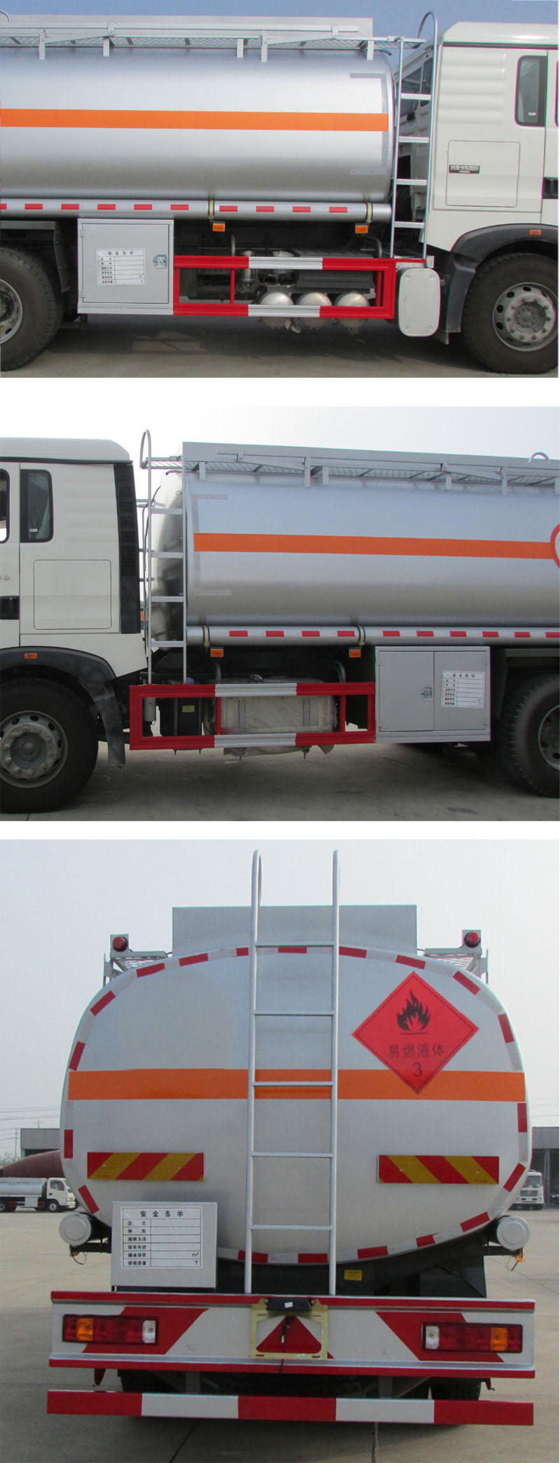 | 1,该车适用于危险品运输,运送危险货物车辆类型为:FL型,装配限速装置,限速80km/h;类项号:第3类,罐体有效容积20立方米,罐体外形尺寸(长卓碜高)(mm)7100?450?700;2,侧/后防护材料为Q235,侧防护螺栓连接,后防护焊接,截面尺寸120?0mm,下边缘离地高500mm;3,工具箱装在车架左侧或右侧,安装位置可前后变化;选装罐体前部左右两侧爬梯;选装后部直爬梯结构;仅选用子午胎和前盘制动器的底盘;安装具有卫星定位功能的行驶记录仪;ABS系统型号为4460046300,生产企业为威伯科汽车控制系统(中国)有限公司.发动机型号与油耗值(L/100km)的对应关系为:MC07.24-50(38.1),MC07.28-50(38.4),MC07.31-50(38.6)。仅用轮胎295/80R22.5 18PR,12R22.5 18PR,11.00R20 18PR。 | |||