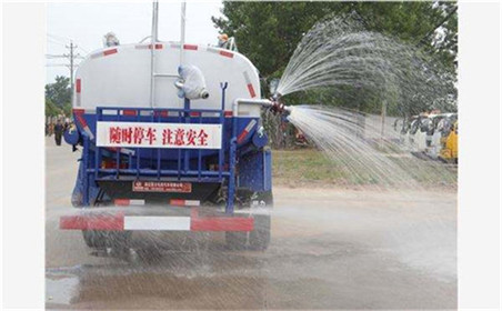 由发动机带动变速箱,变速箱上安装的带动专用洒水泵,洒水泵产生主要动力,将罐体内部的水通泵加压,在通过管网出去。自吸高度:≤7m,洒水宽度:≥20m,最大射程:≥35m;可调节成柱状,也可调节成雾状。